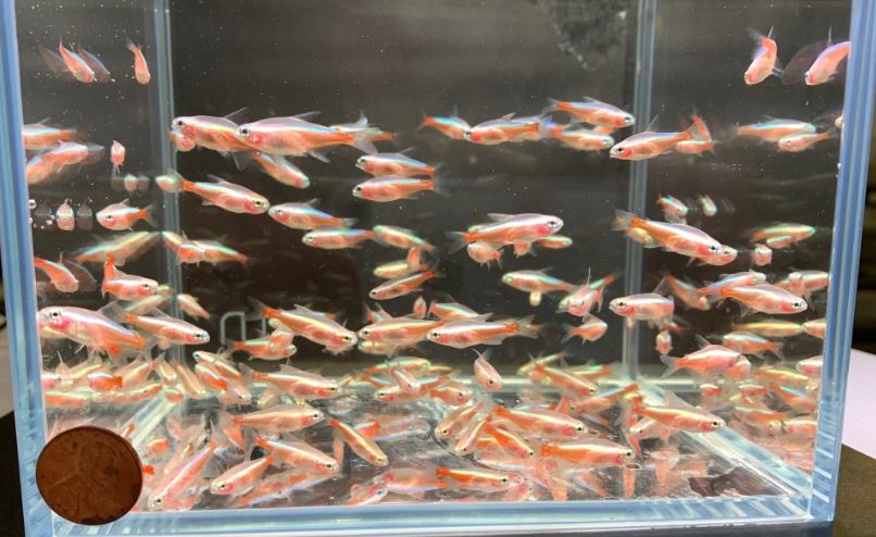 We placed a penny at the corner of the tank so you can have an idea of the size of the fish.