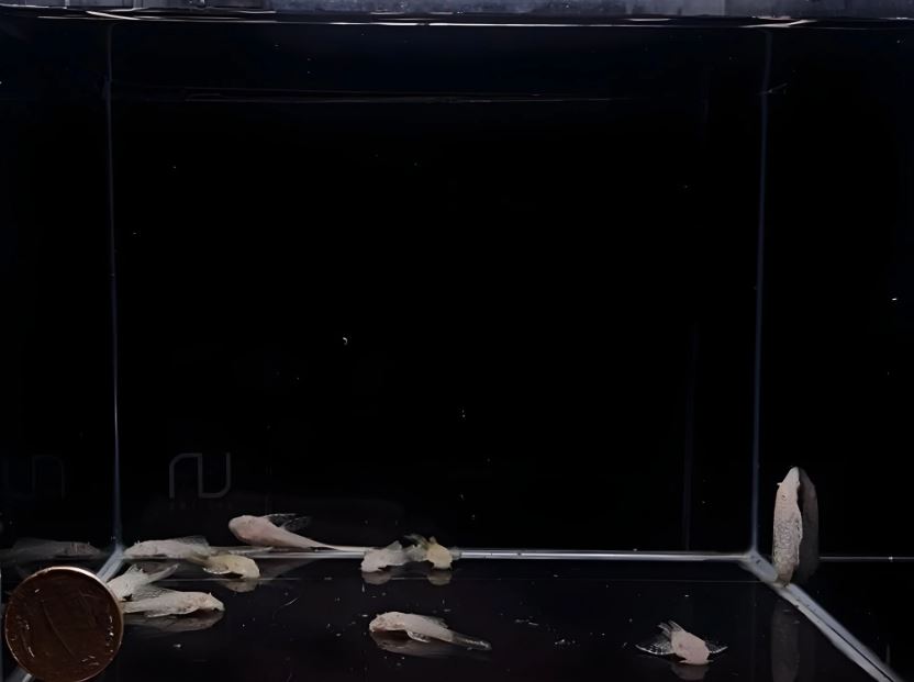 We placed a penny at the corner of the tank so you can have an idea of the size of the fish.