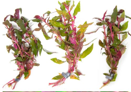 Alternanthera reineckii (Scarlet Temple) is popular stem plant within the hobby, known for it's nice red color. Can handle lower light and no Co2 but with looks it's best under those conditions. Sold as a potted plant.