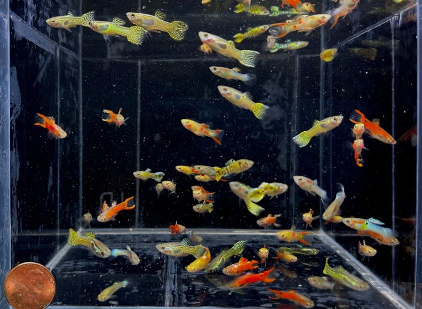 We placed a penny at the corner of the tank so you can have an idea of the size of the fish.