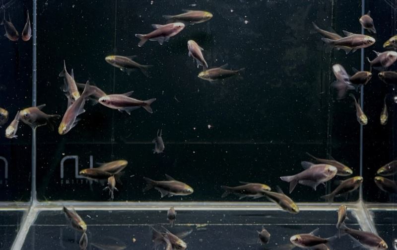 We placed a penny at the corner of the tank so you can have an idea of the size of the fish.