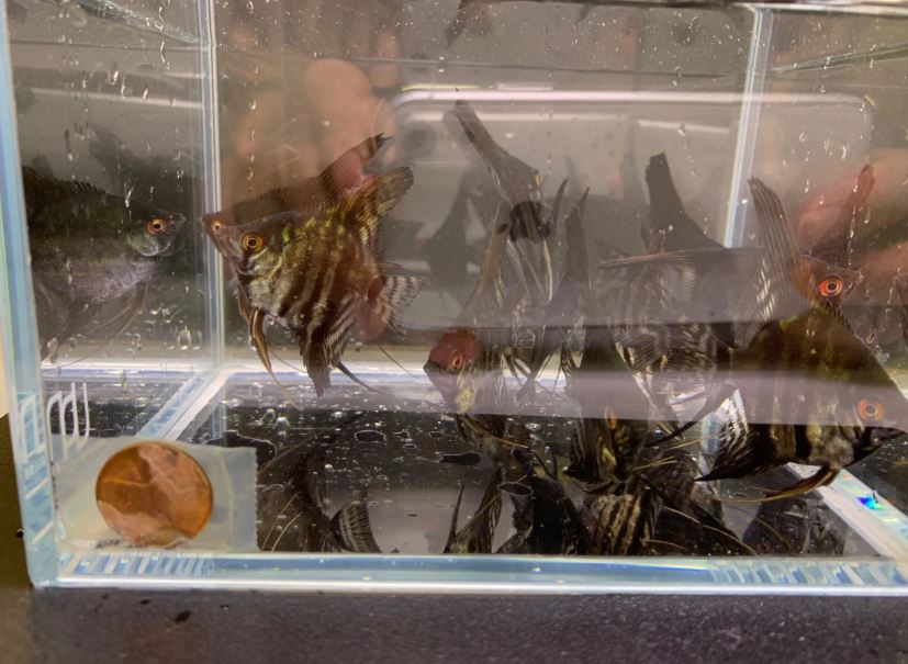 We placed a penny at the corner of the tank so you can have an idea of the size of the fish.