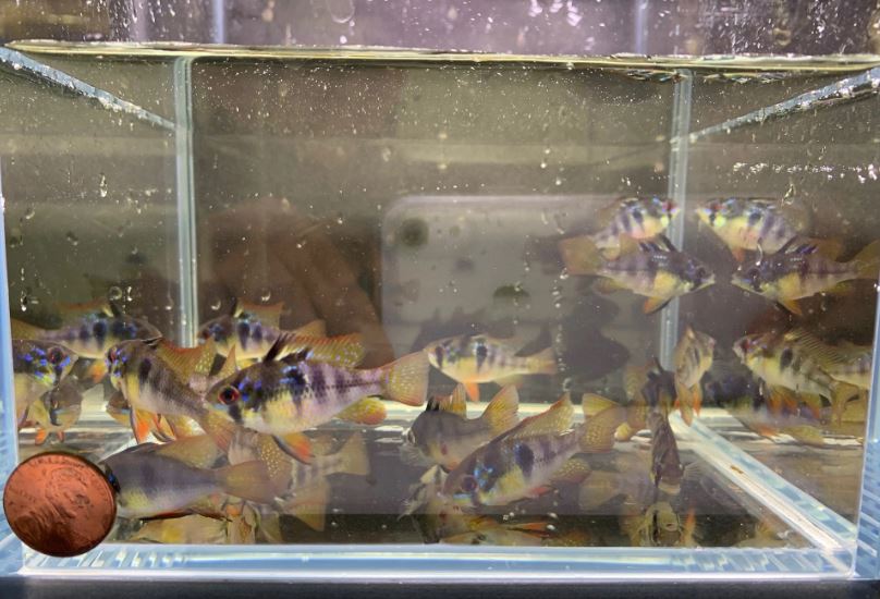 We placed a penny at the corner of the tank so you can have an idea of the size of the fish.
