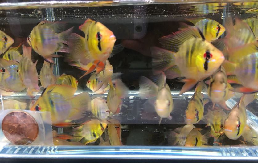 We placed a penny at the corner of the tank so you can have an idea of the size of the fish.