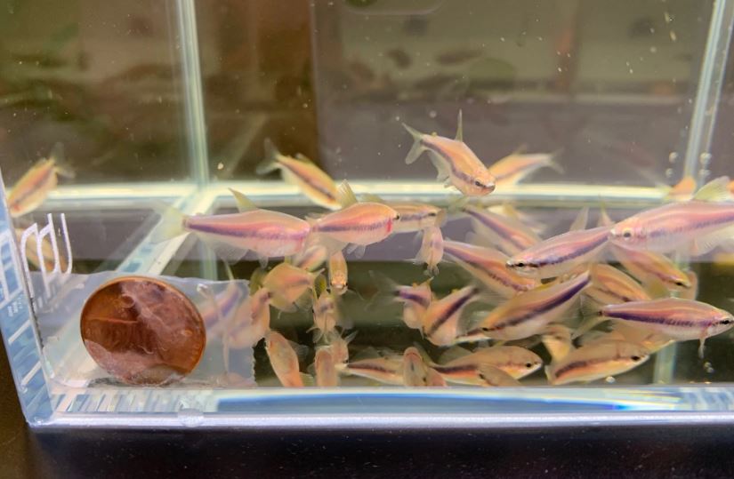 We placed a penny at the corner of the tank so you can have an idea of the size of the fish.