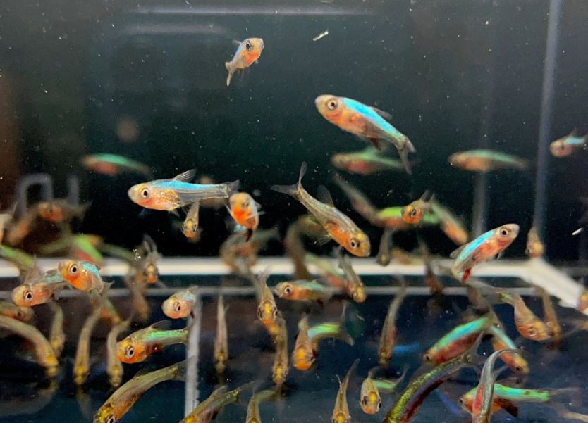 We placed a penny at the corner of the tank so you can have an idea of the size of the fish.