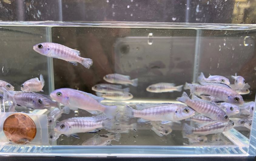 We placed a penny at the corner of the tank so you can have an idea of the size of the fish.