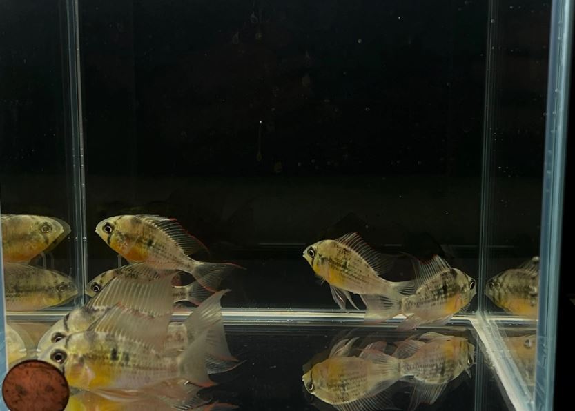 We placed a penny at the corner of the tank so you can have an idea of the size of the fish.