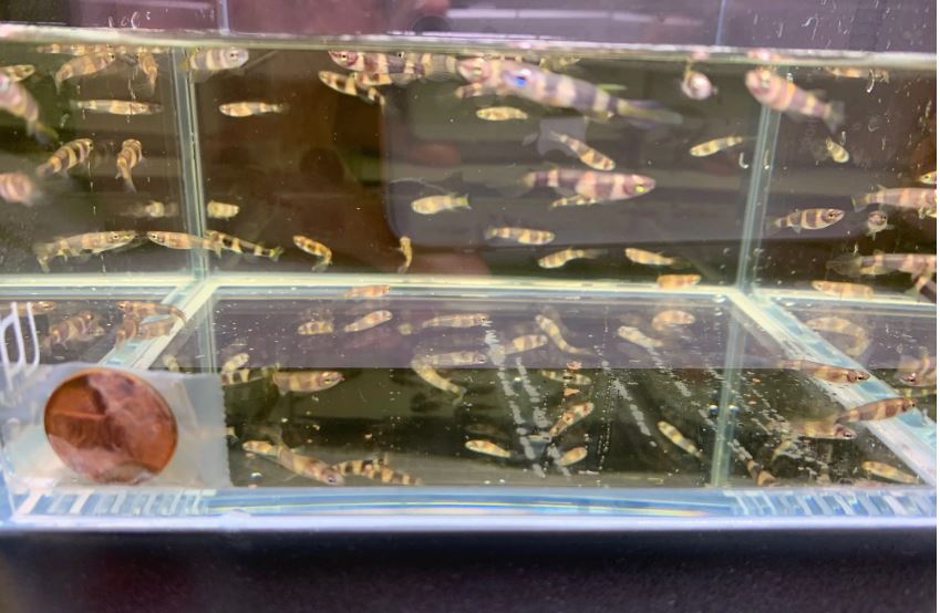 We placed a penny at the corner of the tank so you can have an idea of the size of the fish.