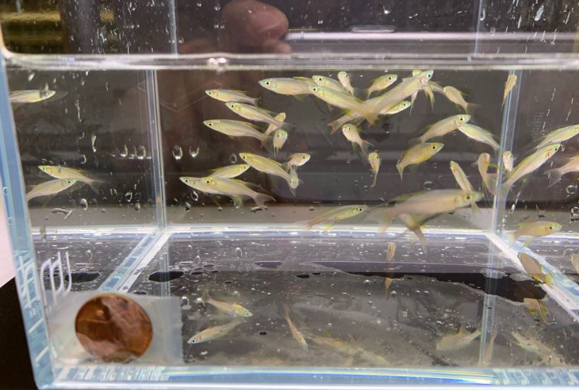 We placed a penny at the corner of the tank so you can have an idea of the size of the fish.