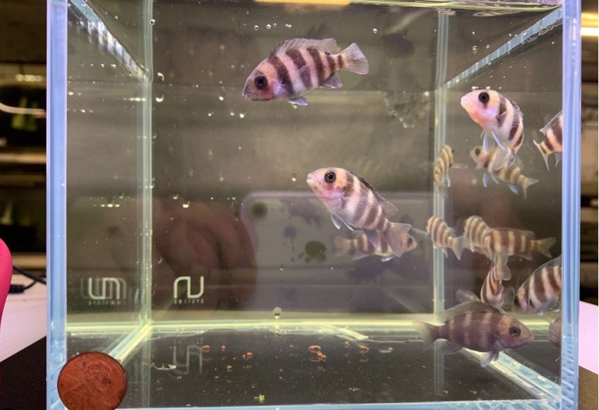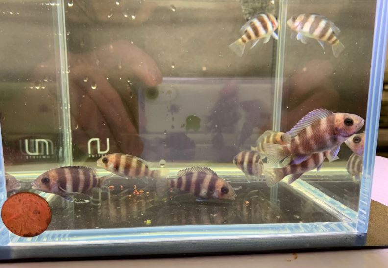 We placed a penny at the corner of the tank so you can have an idea of the size of the fish.