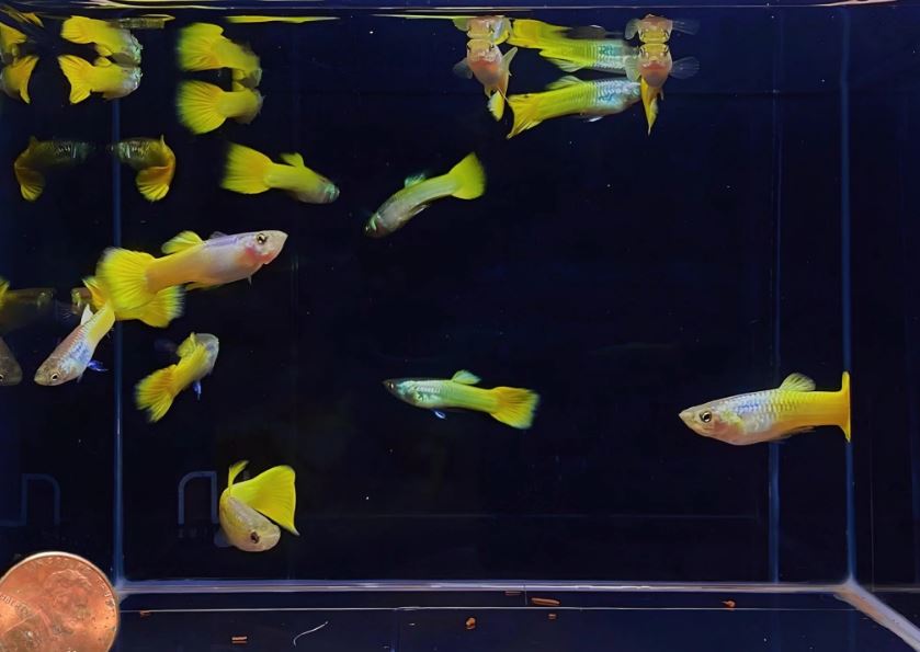 We placed a penny at the corner of the tank so you can have an idea of the size of the fish.