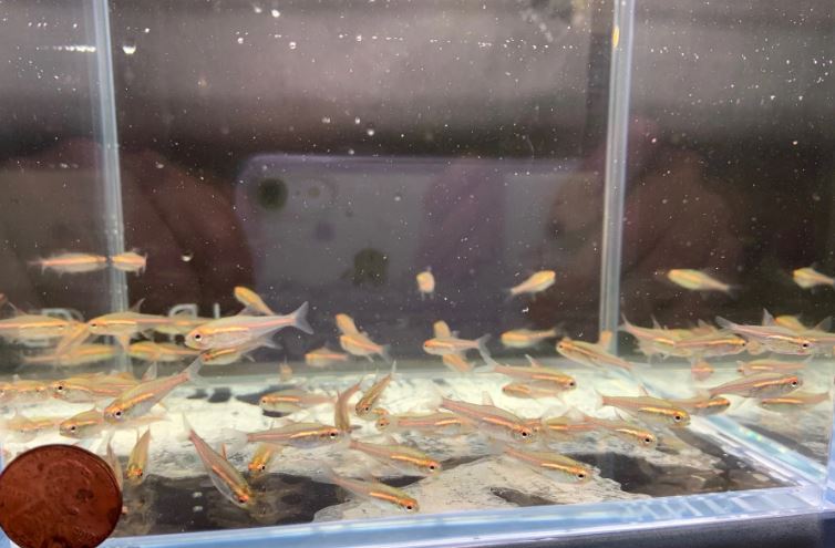 We placed a penny at the corner of the tank so you can have an idea of the size of the fish.