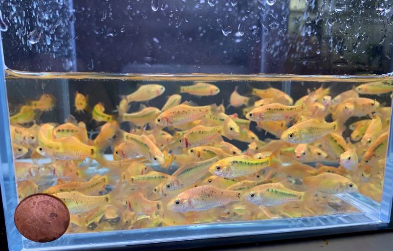 We placed a penny at the corner of the tank so you can have an idea of the size of the fish.