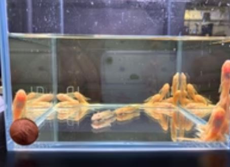 We placed a penny at the corner of the tank so you can have an idea of the size of the fish.