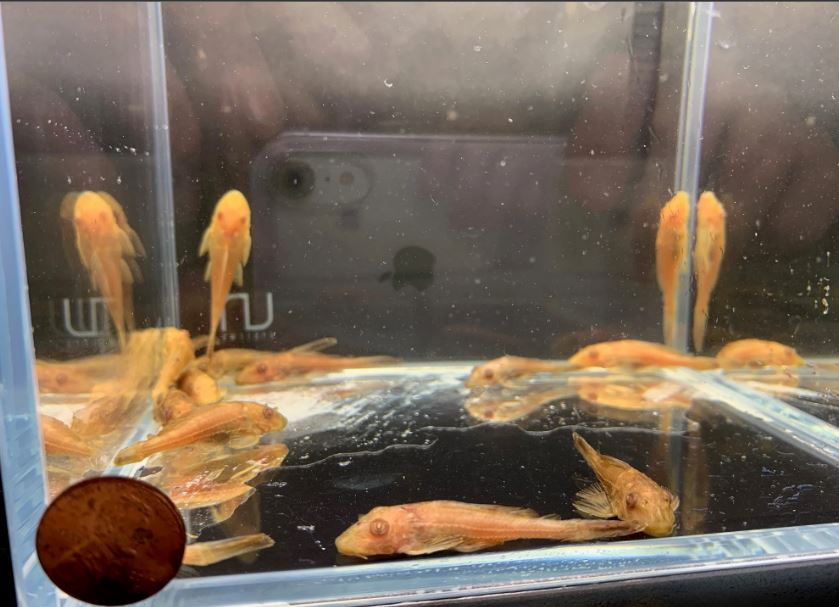 We placed a penny at the corner of the tank so you can have an idea of the size of the fish.