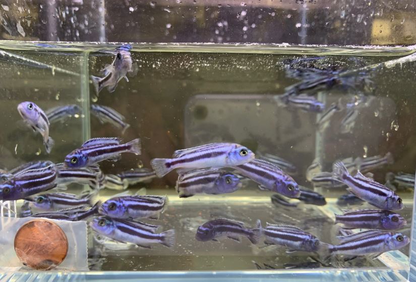 We placed a penny at the corner of the tank so you can have an idea of the size of the fish.