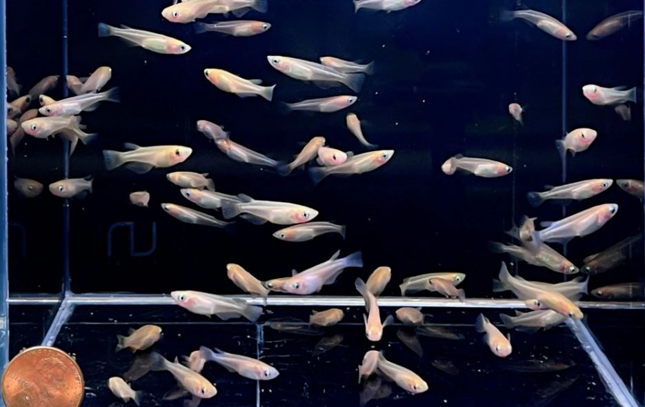 We placed a penny at the corner of the tank so you can have an idea of the size of the fish.