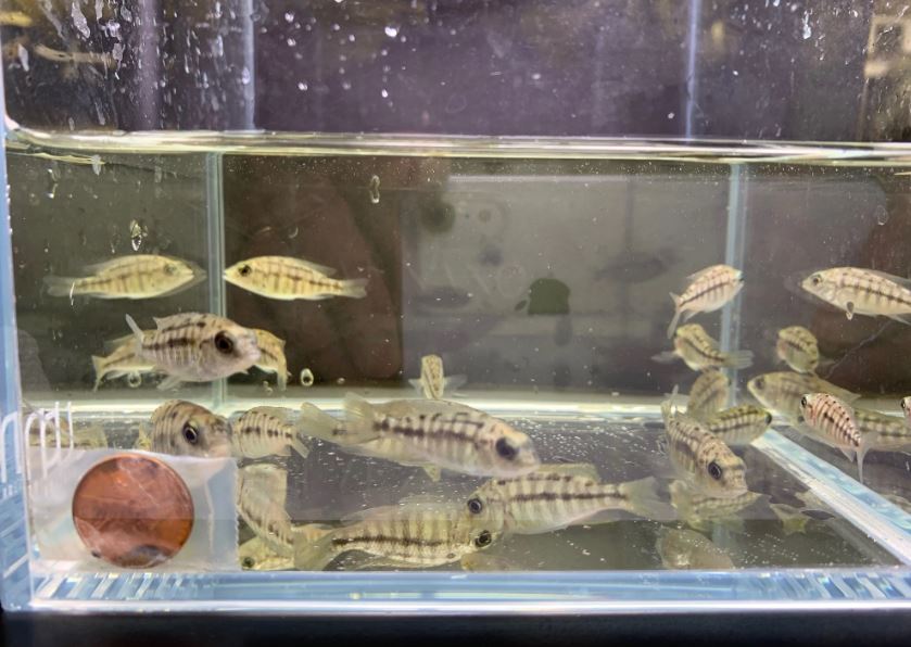 We placed a penny at the corner of the tank so you can have an idea of the size of the fish.