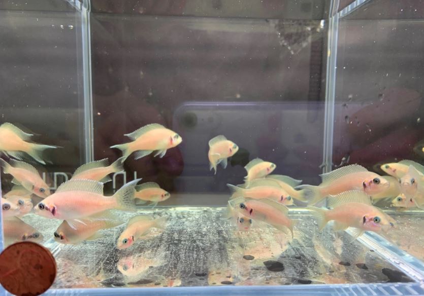We placed a penny at the corner of the tank so you can have an idea of the size of the fish.