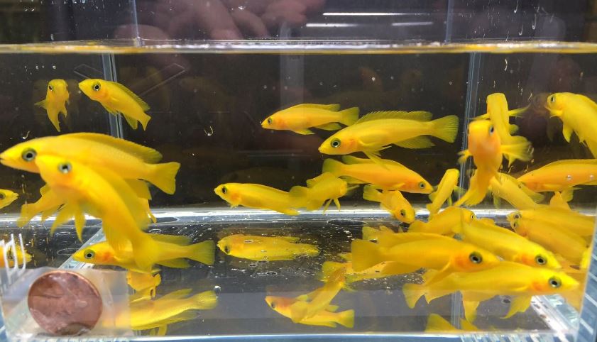 We placed a penny at the corner of the tank so you can have an idea of the size of the fish.
