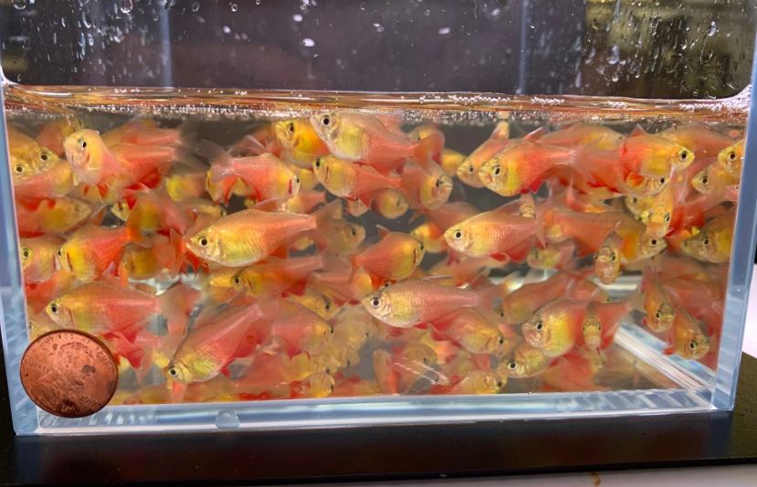We placed a penny at the corner of the tank so you can have an idea of the size of the fish.