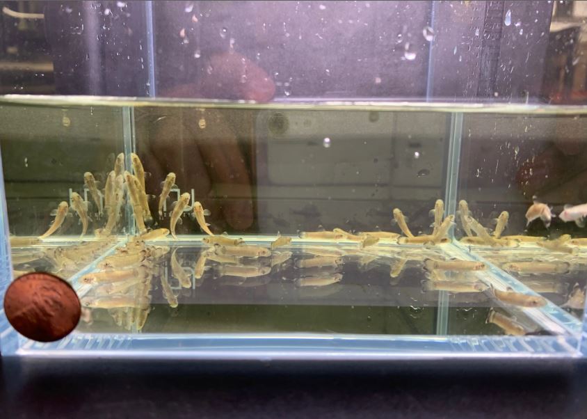We placed a penny at the corner of the tank so you can have an idea of the size of the fish.