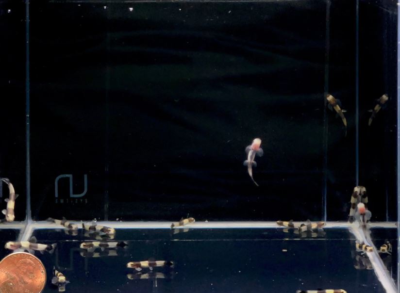 We placed a penny at the corner of the tank so you can have an idea of the size of the fish.