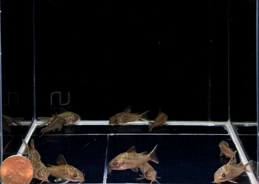 We placed a penny at the corner of the tank so you can have an idea of the size of the fish.