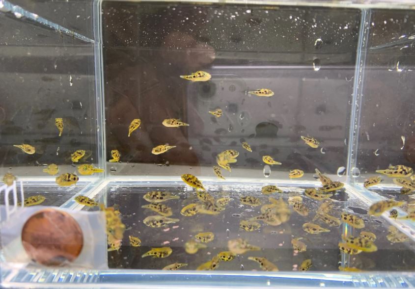 We placed a penny at the corner of the tank so you can have an idea of the size of the fish.