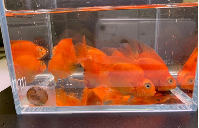 We placed a penny at the corner of the tank so you can have an idea of the size of the fish.