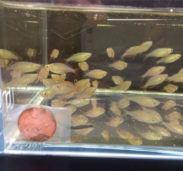 We placed a penny at the corner of the tank so you can have an idea of the size of the fish.