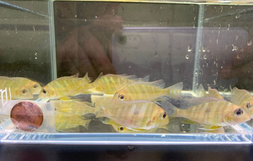 We placed a penny at the corner of the tank so you can have an idea of the size of the fish.