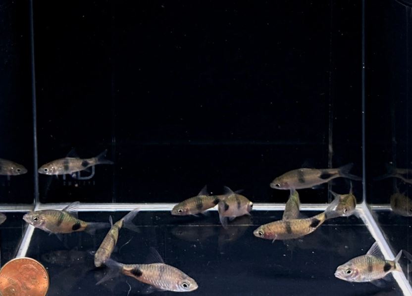 We placed a penny at the corner of the tank so you can have an idea of the size of the fish.