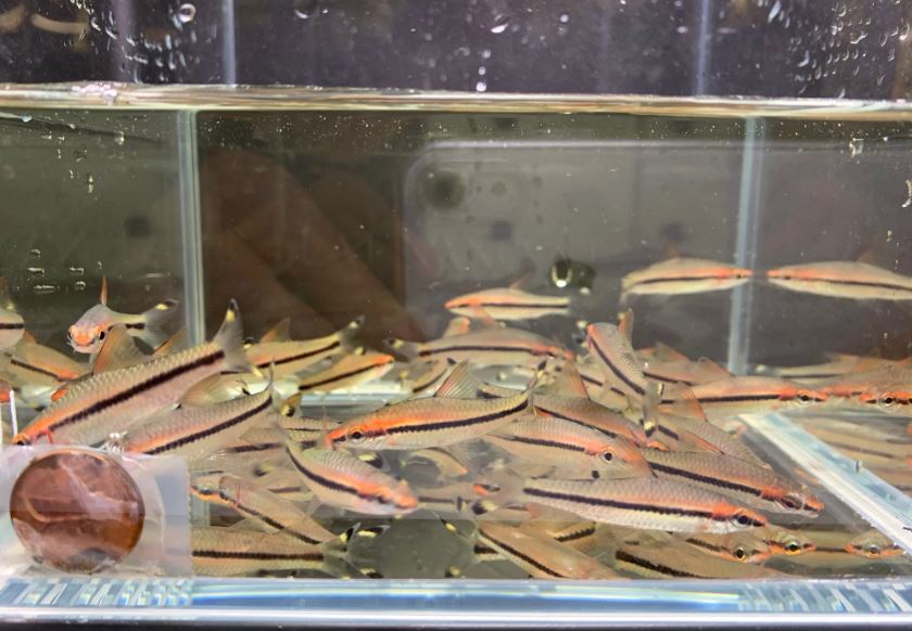 We placed a penny at the corner of the tank so you can have an idea of the size of the fish.