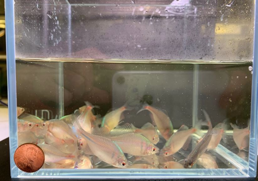 We placed a penny at the corner of the tank so you can have an idea of the size of the fish.