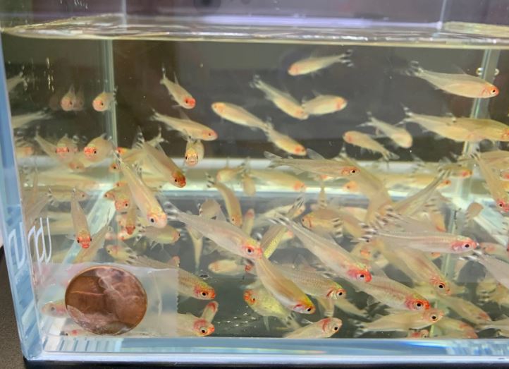 We placed a penny at the corner of the tank so you can have an idea of the size of the fish.