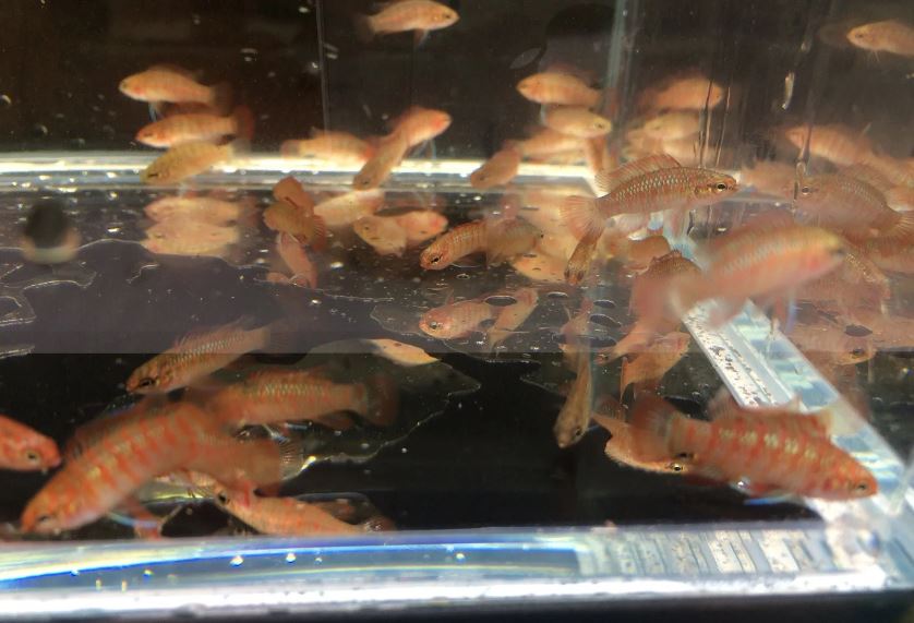 We placed a penny at the corner of the tank so you can have an idea of the size of the fish.