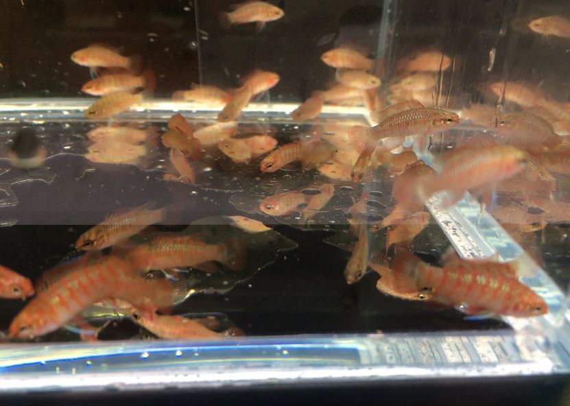 We placed a penny at the corner of the tank so you can have an idea of the size of the fish.