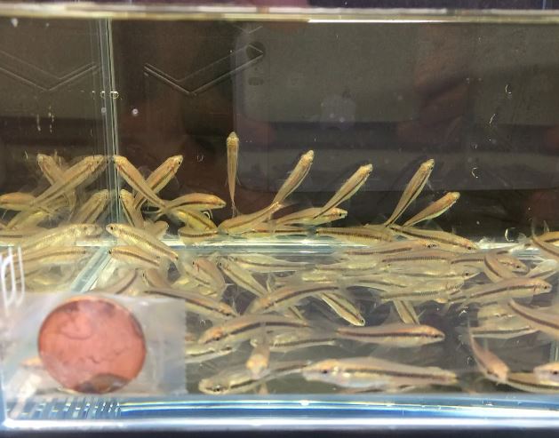 We placed a penny at the corner of the tank so you can have an idea of the size of the fish.