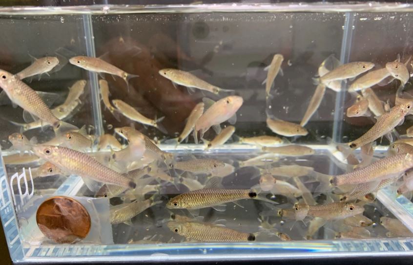 We placed a penny at the corner of the tank so you can have an idea of the size of the fish.