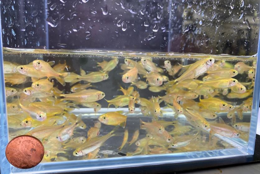 We placed a penny at the corner of the tank so you can have an idea of the size of the fish.