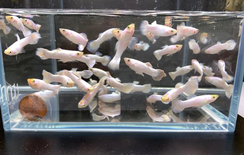 We placed a penny at the corner of the tank so you can have an idea of the size of the fish.