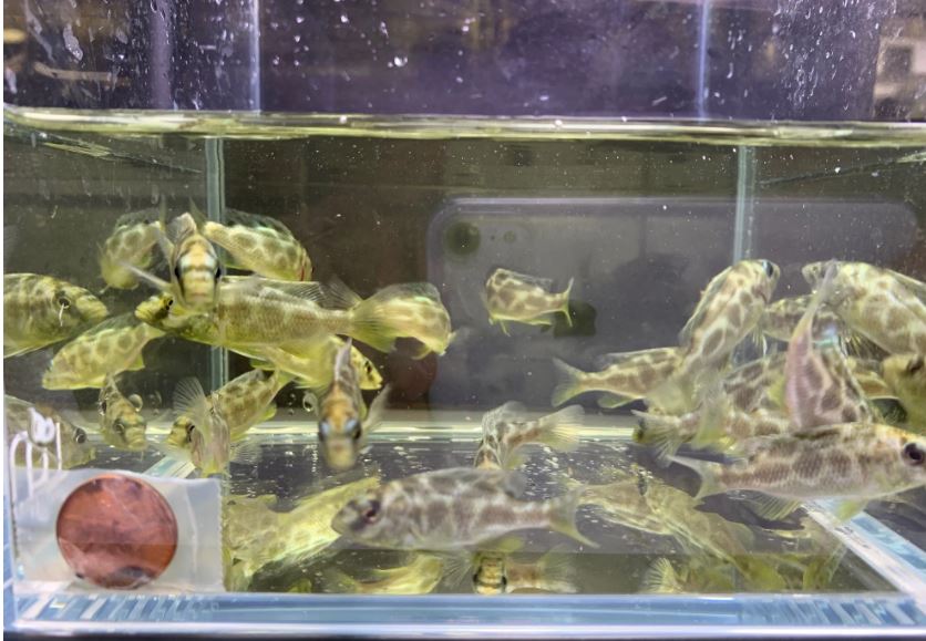 We placed a penny at the corner of the tank so you can have an idea of the size of the fish.
