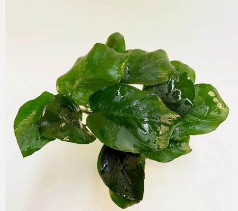 This variety of ANUBIAS BARTERI DIAMOND is an amphibious form that will survive either totally or partially submerged. It is fast-growing for Anubias and very decorative and easy to grow.