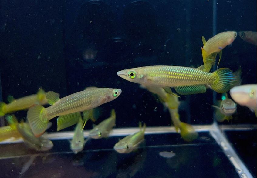 We placed a penny at the corner of the tank so you can have an idea of the size of the fish.