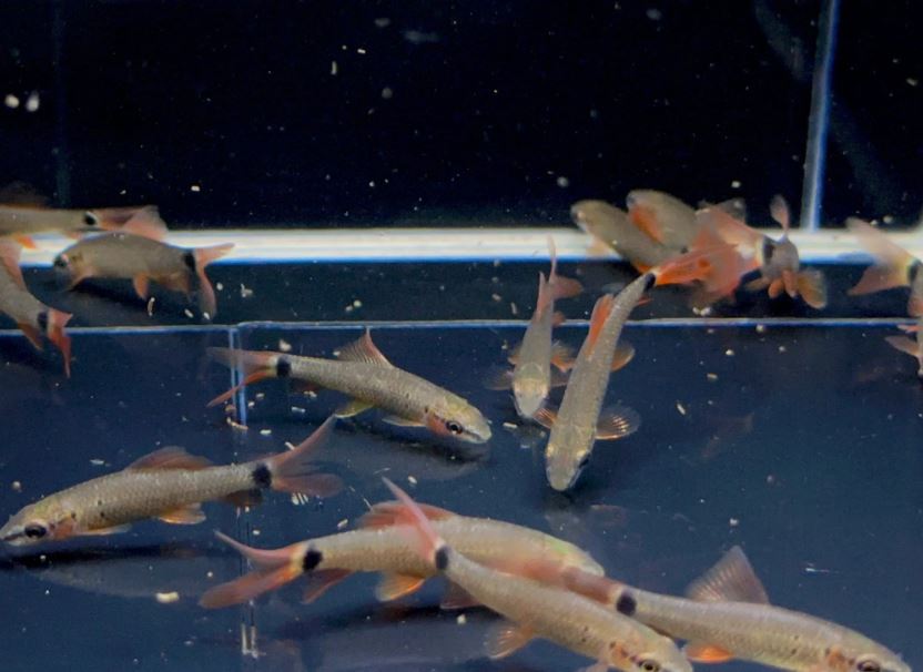 We placed a penny at the corner of the tank so you can have an idea of the size of the fish.