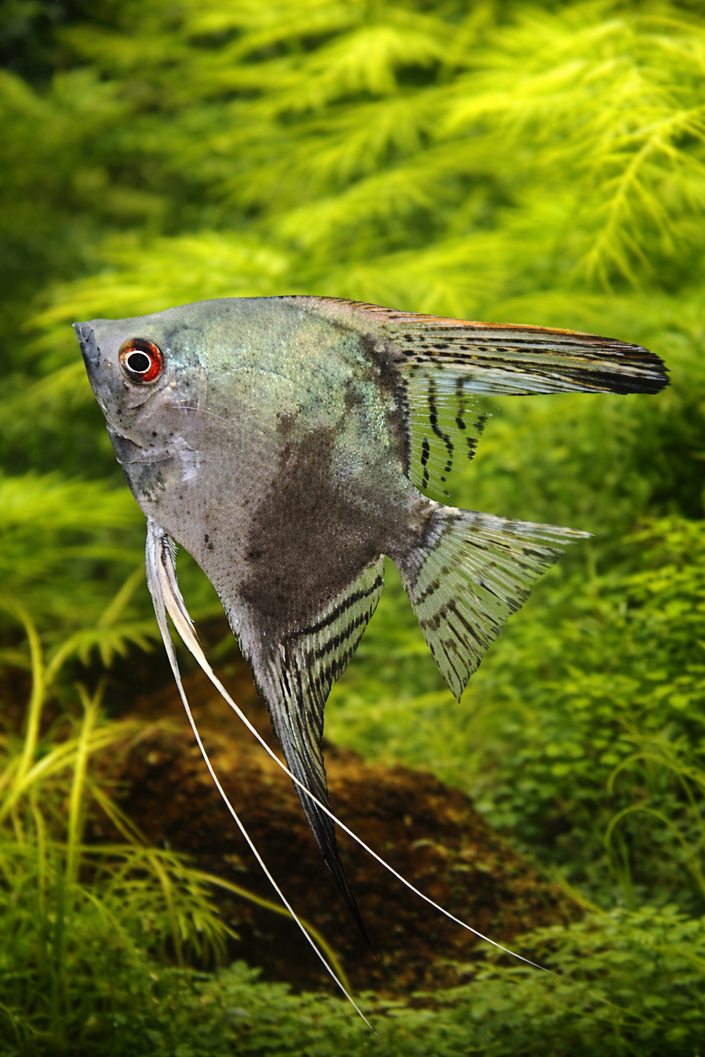 Appearance: Silver to blue body with an iridescent metallic blue glow and long flowing fins that give it a striking and elegant appearance.