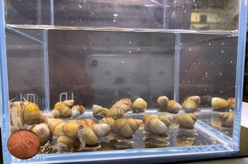 We placed a penny at the corner of the tank so you can have an idea of the size of the fish.